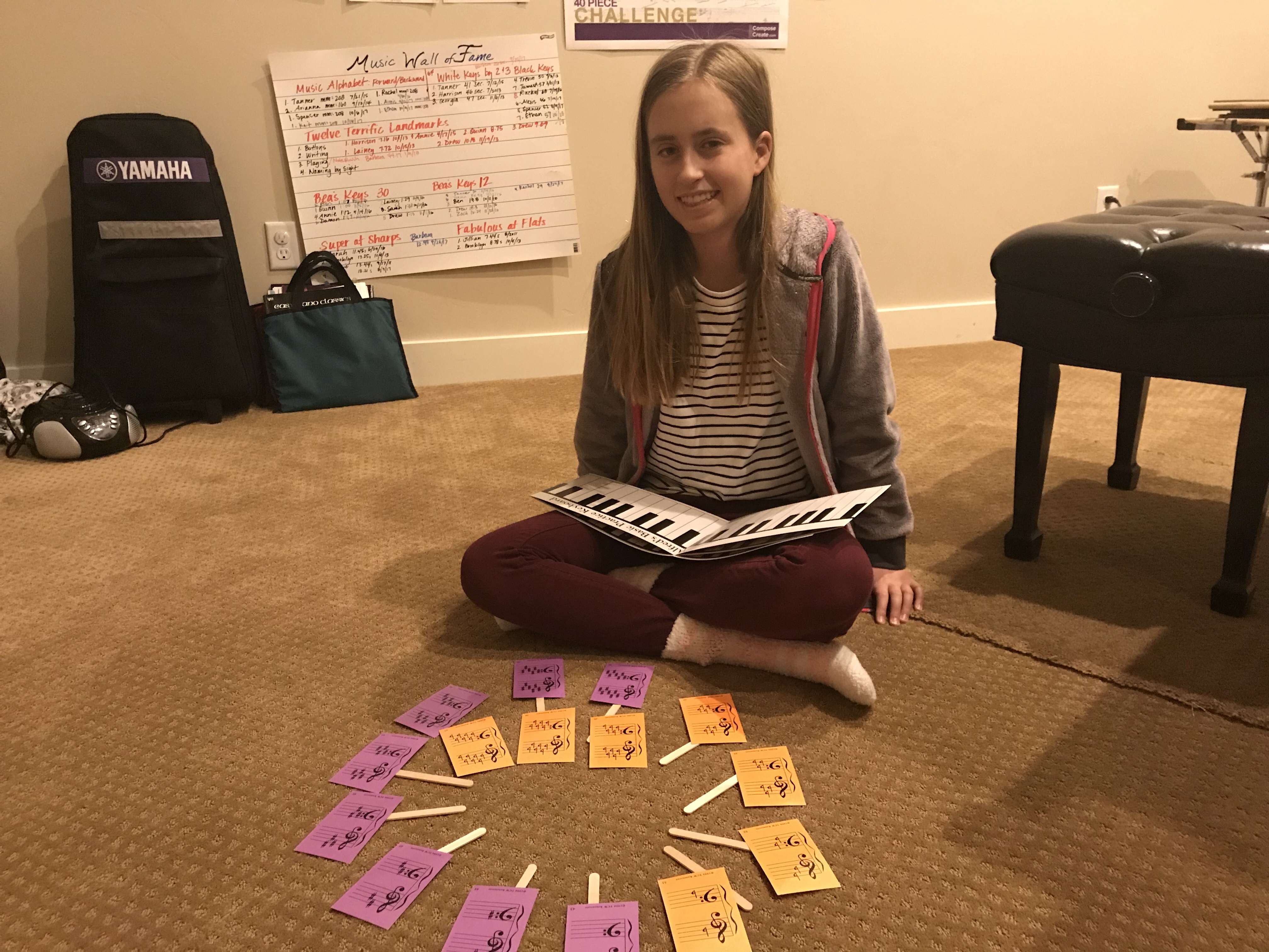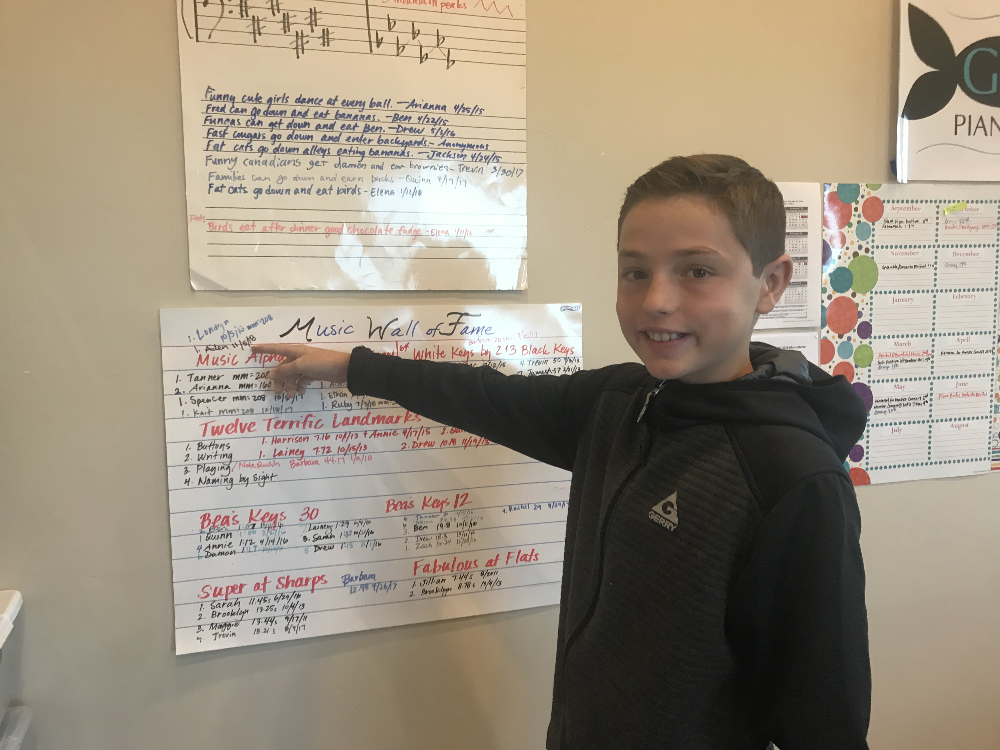 Aiden and Londyn say and punch (hand ladders) the music alphabet forward and backward at 208. Impressive!